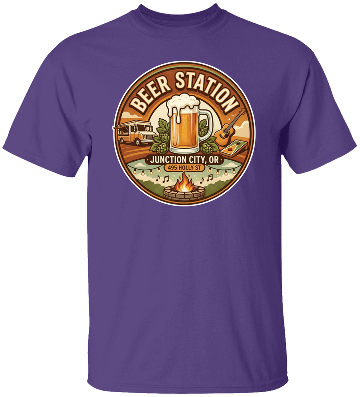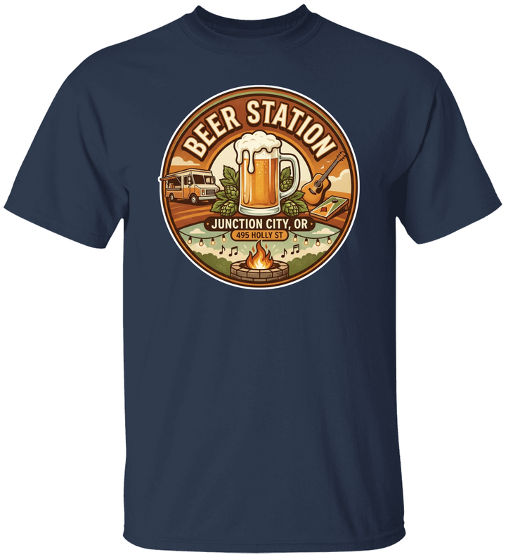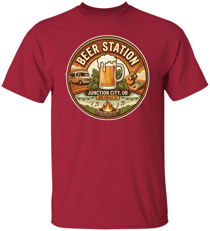 Beer Station Round w:fire pit 2 Beer station Junction City Oregon Unisex Heavy Cotton Tee