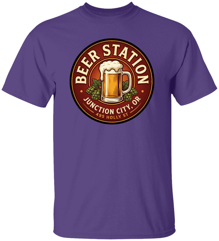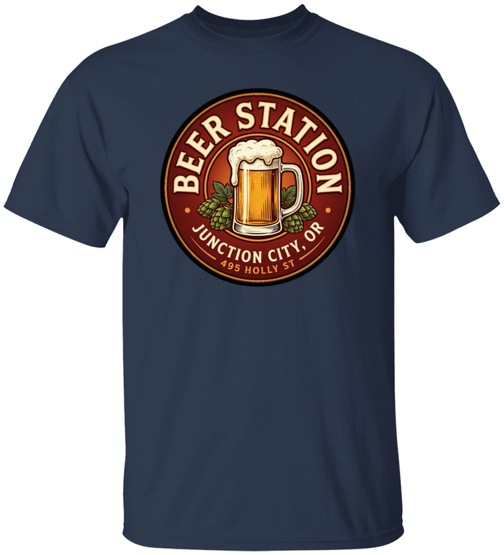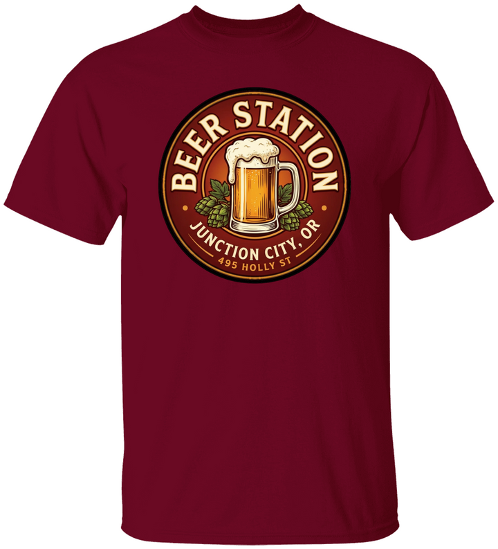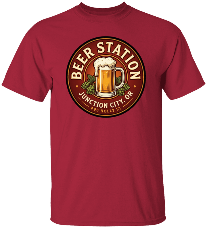 Beer station with hops Beer station Junction City Oregon Unisex Heavy Cotton Tee